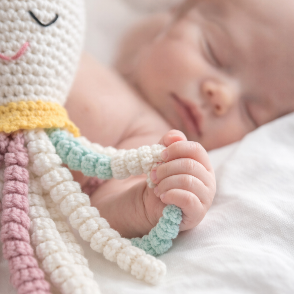 Baby Calm Octopus is a hand crocheted octopus designed for the very first days of life.